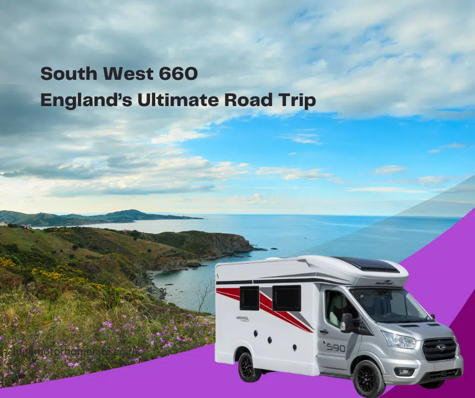 South West 660 Road Trip View Our Motorhomes England’s Ultimate Road Trip If you have heard of Scotland’s NC500 and wondered if England has an answer to this, then look no further. England’s ultimate road trip is the South West 660. 660 miles of some of the best coastline, countryside and driving roads in the UK. If you are looking for something different, then this is it and best of all, doing it in a motorhome or campervan makes it so much more fun. The South West 660 is a circular road trip that takes you through: Dorset, Devon, Cornwall and Somerset. Don’t forget, Luna @ Select Motorhome Hire has the perfect spot to pick up your motorhome hire. Visit our Trago Mills depot in Newton Abbot today! It covers roughly 660 miles and follows much of the coastline, with detours inland for national parks, fishing villages and historic towns. You can start and finish anywhere, take it clockwise or anti-clockwise, and do it at your own pace. That’s the beauty of doing it in a motorhome. Highlights of the Route Jurassic Coast – Dorset Start with dramatic cliffs, fossil beaches and stunning coastal views. Places like Lulworth Cove and Durdle Door are busy for a reason – they’re properly impressive. Devon – North & South Coasts Surf beaches in North Devon, quieter coves in the south, and countryside in between. Dartmoor is a must if you fancy wild landscapes and starry nights. Cornwall – Proper Holiday Territory This is where people slow right down. Coastal roads, hidden beaches, fresh seafood and sunsets that feel like you’re abroad. Yes, the roads are narrow in places – but that’s part of the fun. Somerset – The Gentle Finish Rolling countryside, peaceful campsites and a relaxed pace to round off the trip before heading home. Jurassic Coast – Dorset Travelling through the Jurassic coast in Dorset is the perfect way to start the South West 660. Heading through Dorset in a motorhome gives you the opportunity to stop and take in some of the most amazing views which includes Durdle Door and Lulworth Cove. Visit Corfe Castle, a charming village with a ruined castle and heritage steam train and explore the eerie Tyneham abandoned village. Wander the dramatic cliffs of West Bay, meet rescued primates at Monkey World, or relax on Sandbanks’ beautiful beaches. Discover the iconic Portland Bill Lighthouse, the vast Chesil Beach, the fossil-rich town of Lyme Regis, scenic Studland Beach. With so much to do, you will need a good number of nights here. We have picked out some top spots for taking your motorhome or campervan along the Jurassic Coast. Acton Field Campsite – A rural site just outside Acton with some unbelievable views. Rosewell Camping – Just on the outskirts of Weymouth this campsite has views, access to a beach close by and allows dogs. Devon – South Coast Having started in Dorset, you would most likely head over to the South Devon coastline before heading to Cornwall. Why not start in Dartmoor National Park – walk a tor, spot wild ponies, then head to Haldon Forest Park for an afternoon trail. You could stay Overnight near Totnes and take an evening stroll along the River Dart. Visit Dartmouth Castle and wander the harbour. Follow the South West Coast Path towards Slapton Sands for coastal views and WWII history. Visit Salcombe and its beaches, then continue to Paignton Zoo for wildlife and family activities. Finish with a sunset walk on Blackpool Sands and a quick visit to Plymouth, rounding off South Devon’s coast, countryside and culture making this a great 3 or 4 day excursion around Devon’s South Coast. Here are a couple of great overnight stops Steamer Quay Club Campsite is a Caravan and motorhome club site open to non members. A fantastic location in Totnes. Book early though, this site gets booked up during the high season. Plymouth Sound Club Campsite is another Caravan and Motorhome club site which allows non members. With dogs allowed and great views, why not stay here during your stay in Plymouth. Cornwall When in Cornwall why not visit Kynance Cove on the Lizard Peninsula for stunning turquoise water and coast views. Explore nearby South West Coast Path cliffs and head to Penwith Heritage Coast around Porthcurno and Land’s End for dramatic seaside scenery. Take a look at the iconic Minack Theatre perched over the sea, and travel up to St Michael’s Mount tidal island for a unique walk at low tide. We also recommend Mount Edgcumbe Country Park and coastal paths, finish wandering the historic harbour village of Boscastle. Dont’t forget to visit some of the UK’s best beaches at Porthcurno and Porthminster. Here are a couple of great overnight stops down in Cornwall Hendra Holidays is a great Motorhome and camping site with plenty to do for all the family. With an indoor and outdoor pool, entertainment and eatery there is plenty to keep you busy here. Based in Newquay. Watergate Touring Park is a highly rated campsite also near to Newquay. A well established motorhome and caravan park open from the end of March to late October. North Devon Coastline Devon and Cornwall are known for some top surfing spots so if you are a surfer, don’t forget to visit Croyde Bay or Woolacombe. If not, then head into Exmoor National Park for moorland views, wildlife and walking trails. Then go to the dramatic Valley of the Rocks near Lynton & Lynmouth for cliff scenery. Try out the iconic seaside town of Ilfracombe, ride the Lynton & Lynmouth Cliff Railway and wander harbour paths. Drive the rugged North Devon coastline plus take a stroll along the South West Coast Path for breathtaking views. We recommend at least 4 days exploring here so you don’t feel rushed and with so many overnight options, why would you! Hidden Valley Park – is an award winning, lovely wooded valley base close to Ilfracombe, Woolacombe and Croyde beaches. Mill Park Campsite is surrounded by woodland with